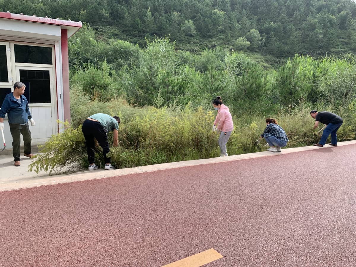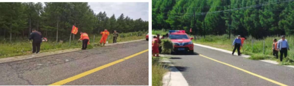 市剪子岭林场将村庄主要街道至林场牌路检查站的路段划分为六个任务区,以党员干部为组长,分为六个小组采用劳动竞赛的方式对各任务区内的垃圾、杂草,特别是蒿类植物进行清理,并积极向周围群众宣传致敏蒿属植物、过敏症状及预防、森林防火等相关科普知识,传播文明意识、森林防火意识、卫生观念和良好行为习惯。